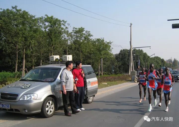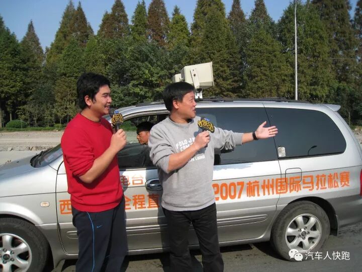 1993年,我离开了部队。由于有着大学体育本科田径专业毕业的经历,考入了杭城西湖之声电台后成了一名体育记者与体育节目主持人。从第7届杭马开始,报道杭马成了我每年都需要做的采访工作,也正因此,对杭马的了解也就更深入了一些。在2006年和2007年(第20届杭马和第21届杭马),西湖之声电台与杭马组委会有一个深度合作,电台的移动直播车现场直播杭马的实况。在网络还不如现在发达的当时,我们的3G移动直播车音质流畅地完成了移动直播任务。(图中紧跟计时车后的就是西湖之声3G移动直播车)
