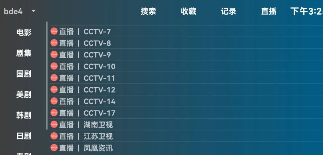 遇到无法播放的话,就切换解码方式。内置多个直播源也可以切换。