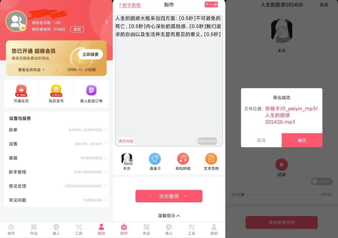 把你要合成的内容复制进来,试听一会儿看看效果,没啥问题直接合成再导出就行了。
