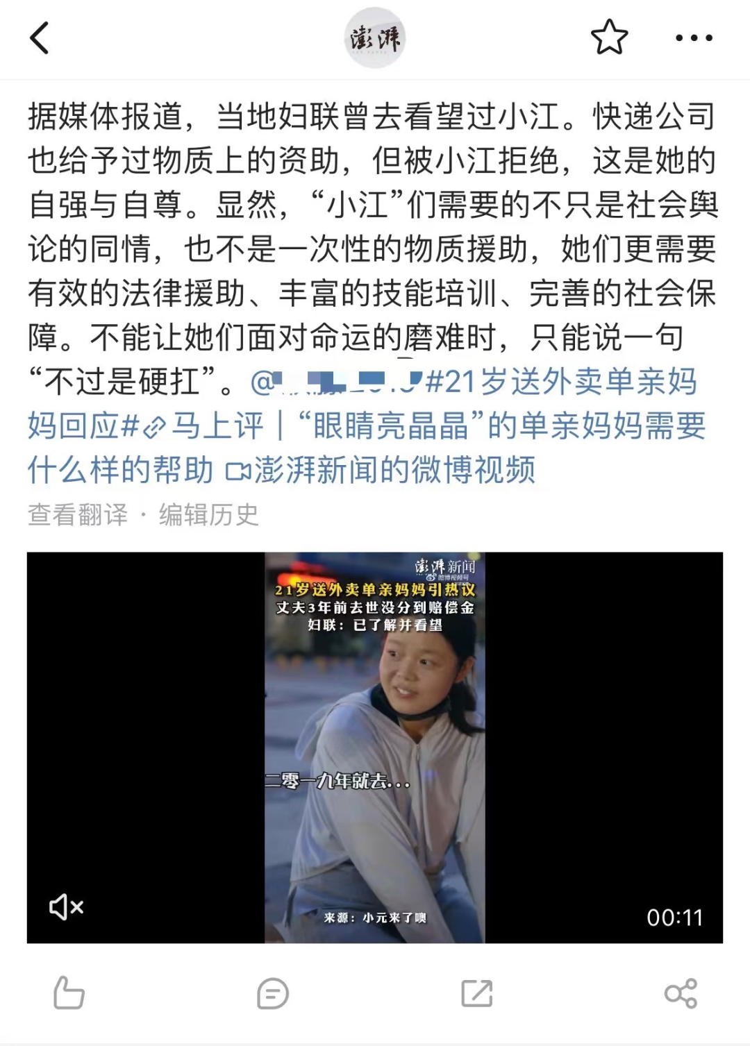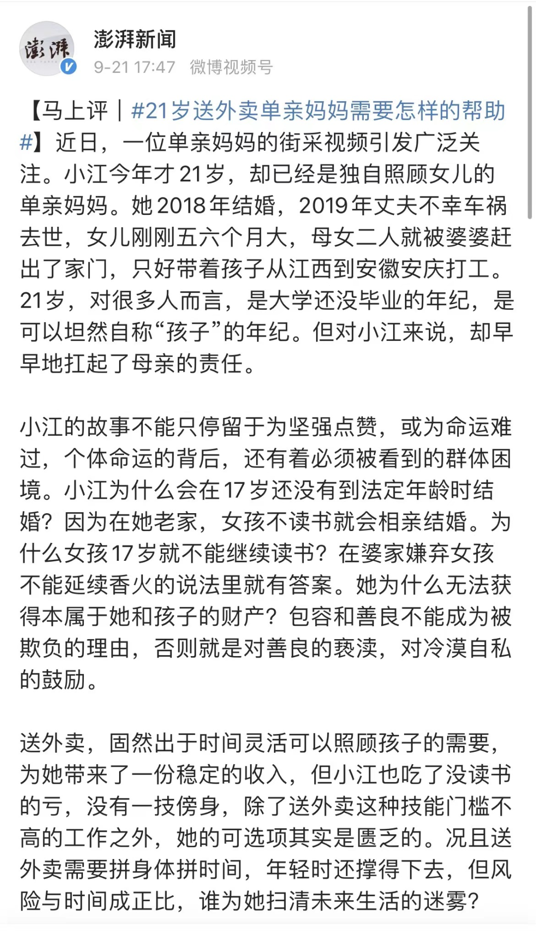 一位送外卖的单亲妈妈的街采视频,
