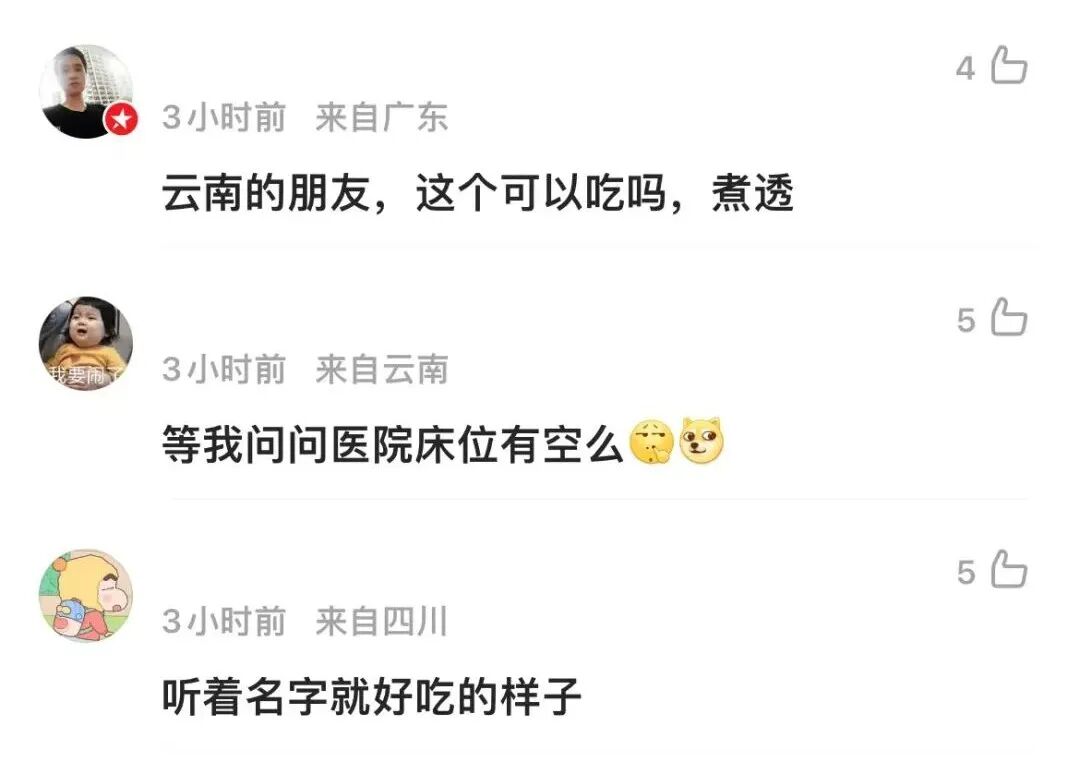 网友们的好奇(胃)心(口)让专家“操碎了心”。浙江大学生命科学学院相关工作人员表示,食用野生菌有三个最基本的原则:没有吃过的尽量不要吃;不认识的尽量不要吃;没有把握的尽量不要吃。