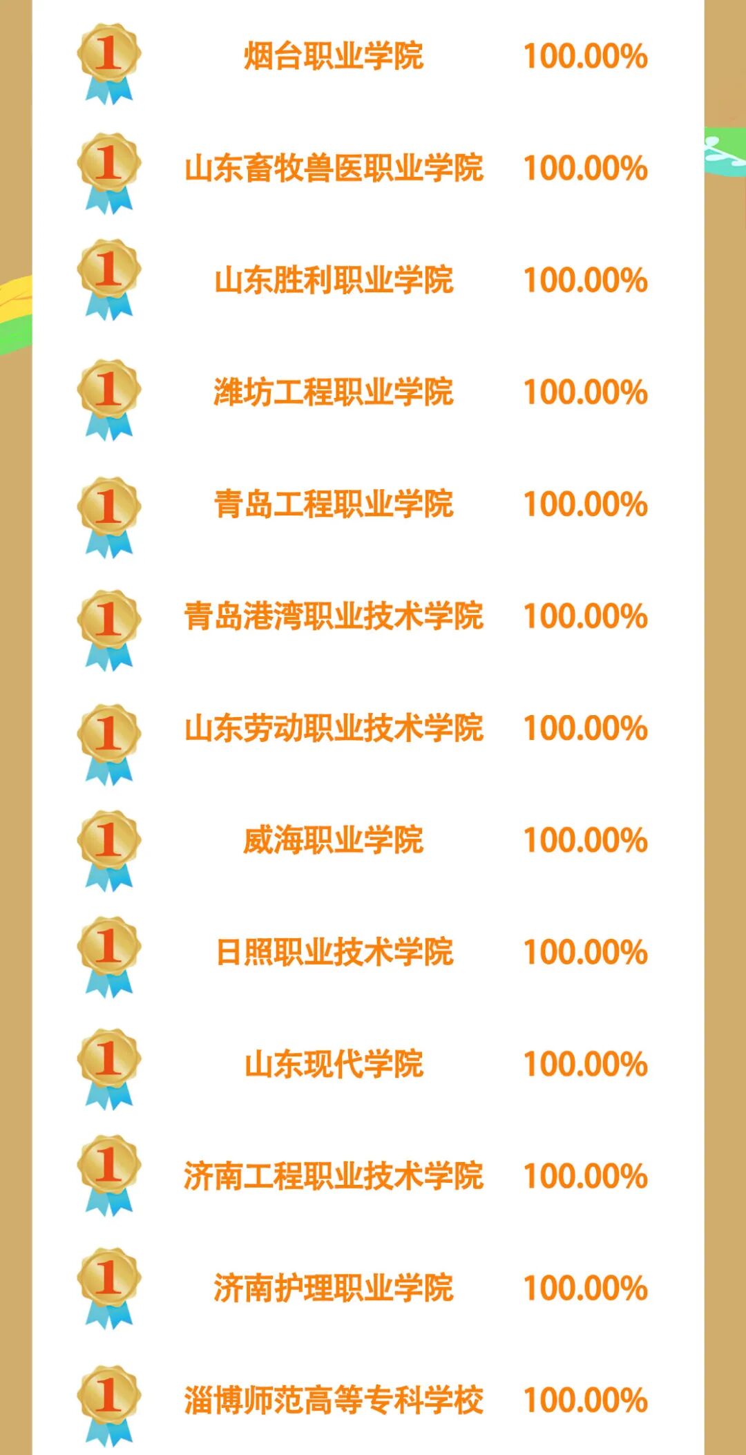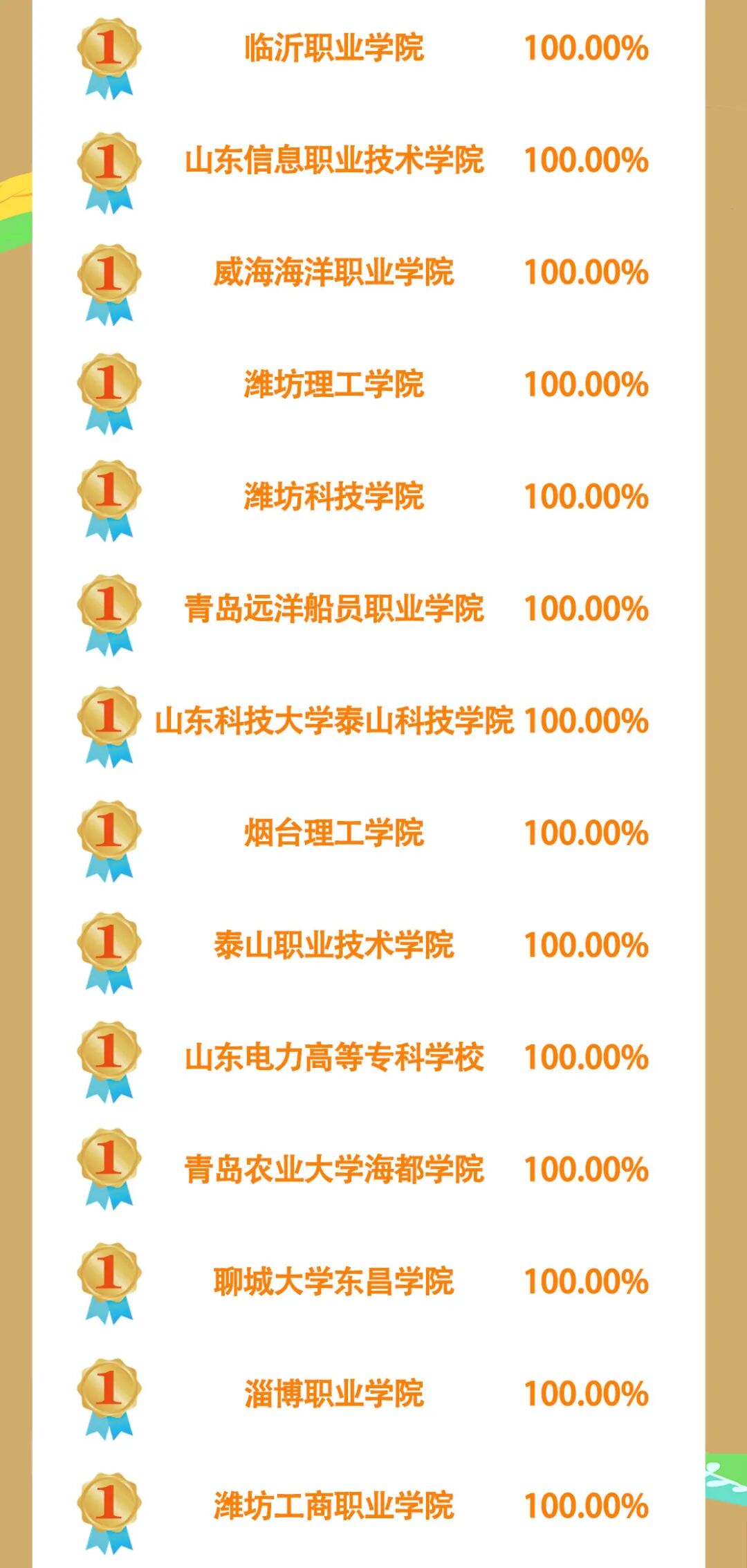 市属高校中,参学率达100%的学校有99所。青岛航空科技职业学院强势领跑。滨州科技职业学院、潍坊环境工程职业学院位列第二、第三。