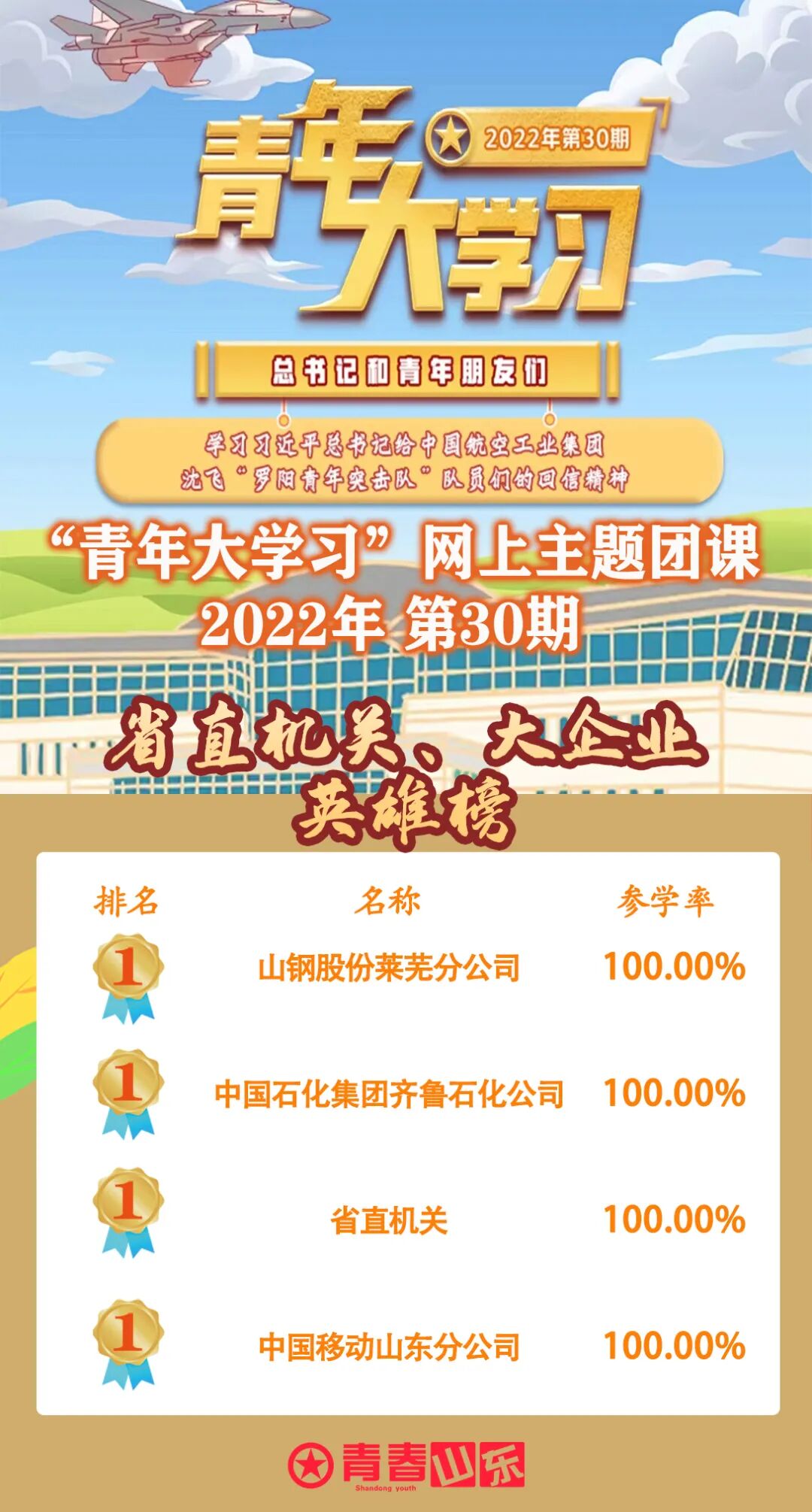 2022年第30期“青年大学习”,我们来到航空工业沈飞,一起学习领悟习近平总书记对广大青年的关怀期望和重要要求!在各级团组织及团员青年的共同努力下,本期大学习再次圆满完成!