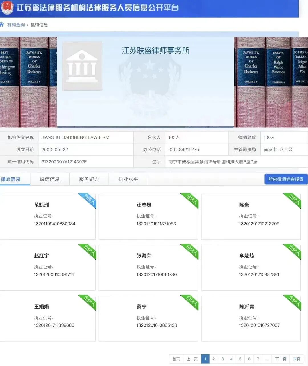合并后的联盛律师事务所注册资金2135万元,总部地址为南京市北京西路69号。截止目前下设有南京、无锡、泰州、江阴、上海、南通、靖江、宜兴、宿迁、淮安、西藏吉隆等分所机构,共拥有执业律师350余人,综合实力位居江苏省律师行业前列。