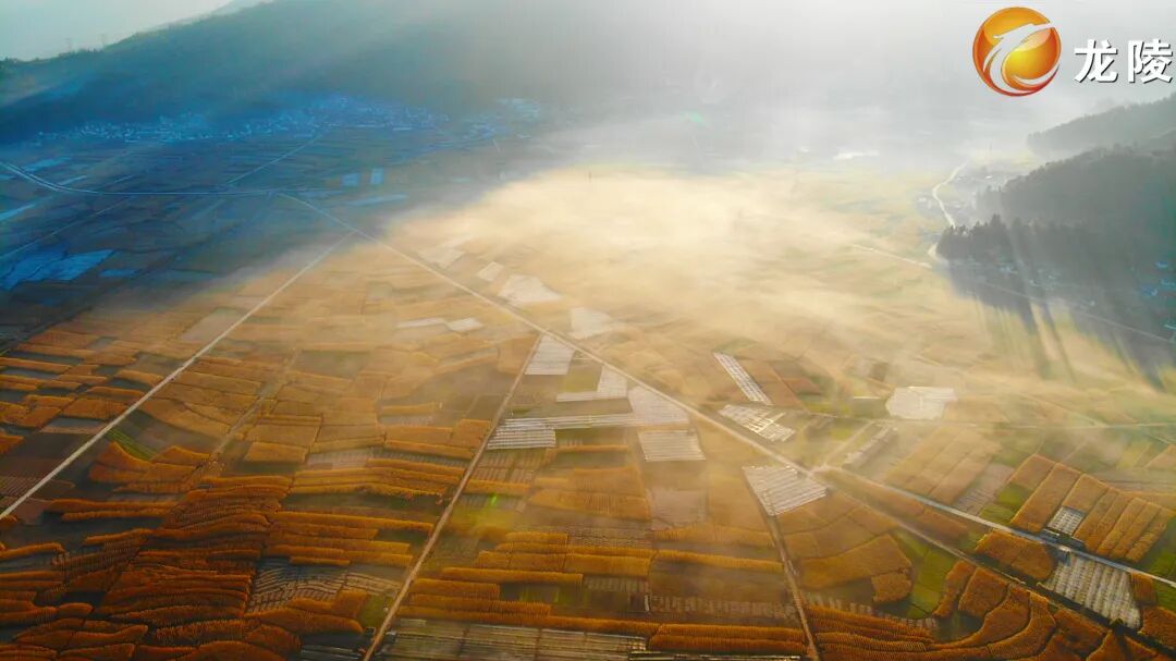深秋,正是玉米成熟的季节,平达坝子呈现一派金黄的景象。当清晨的第一缕阳光穿过东边的树林,照耀在晨曦中烟雾缭绕的平达坝子上,羞涩的薄雾慢慢褪去轻纱,无边的田野只剩下满地金黄,如梦似幻。