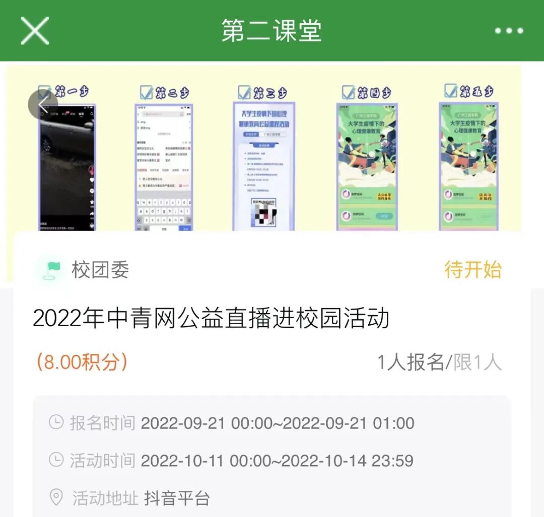 学校报名成功后,活动组织方会给学校一个特定的二维码;请同学们务必使用抖音APP登录个人账号,保证自己抖音账户信息准确,比如年龄是真实的年龄,城市是学校所在城市等,扫描课程二维码进行报名,务必在报名时填写自己的真实信息(学校、姓名和学号),扫描本校的课程二维码进入课程预约签到,并在课程开始后自行观看课程。