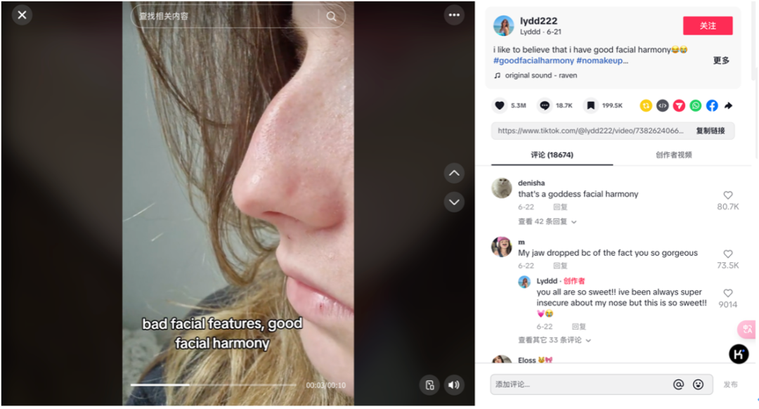 更让人啧啧称奇的是,Rayz 极有可能是在零推广预算的情况下达成了上述成绩。通过第三方数据平台我们没能查询到 Rayz 任何的投放记录,而给它带来大几千万浏览量的 3 个 TikTok 账号也全是团队自己起的号。看到这里你可能会感慨 Rayz 团队超强的素材能力,但不得不介绍他们的一个“逆天操作”,直接去下载漂亮女孩的美黑视频,加上产品的录屏变成自己的素材。通过这样批量操作,Rayz 成功跑出了爆量素材,目前#tanning(晒黑)标签下浏览量 Top2 的视频都是 Rayz 的广告,点赞大几十万。