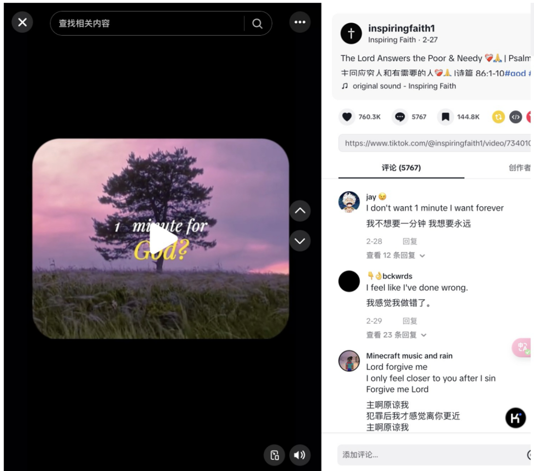 而 Rayz 也并不是这个团队的唯一一个作品,7 月上线 Rayz 后,8 月他们又用类似的方法推广女性颜值打分工具 Demure,9 月则是宗教应用 One Minute for God,速度做到了一月一款。每一款应用背后都是一个对于 TikTok Trends 的洞察,Demure 灵感来源于 TikTok 上“五官很丑、整体和谐”的热门视频,One Minute for God 则对标的是 TikTok 上的宗教账号,“留一分钟给上帝吗?”通常作为视频中直击人心的开场语出现。你可能多少会疑惑,这有必要做成一个产品吗?Rayz 团队的答案可能是交给市场检验,他们则专注于快速构建和低成本推广来争取更多的试错机会。