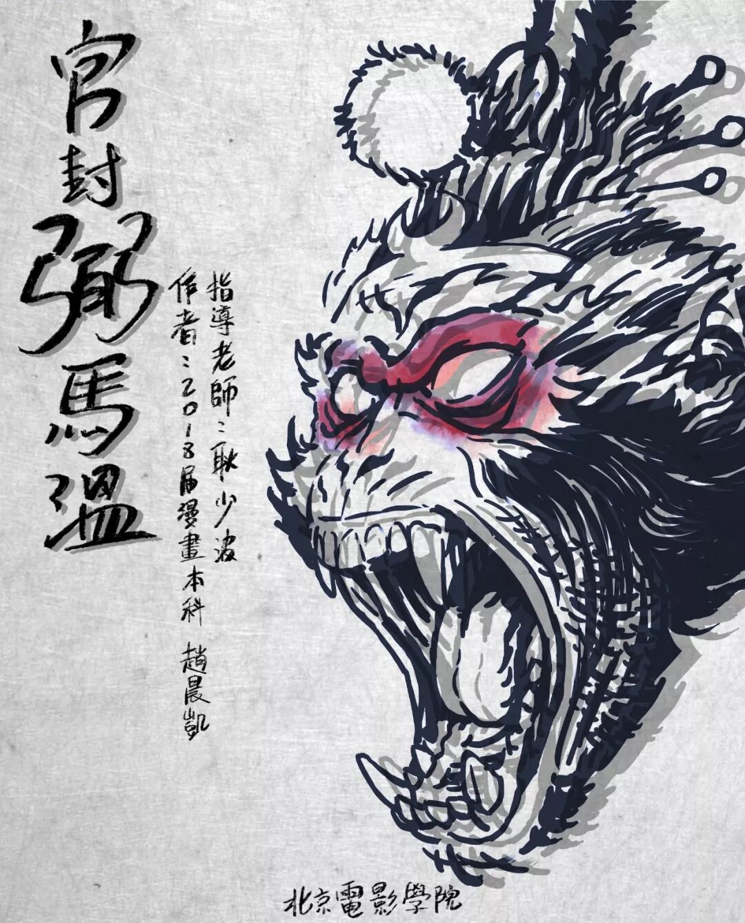 改编自《西游记》开篇。我们中华民族是个多灾多难的民族,但自身奴性的缺陷我们也不能回避,人类走向文明的过程也是一个逐渐丢失一些天性的过程,在我的毕业作品《官封弼马温》中,我将孙悟空的形象再创作以讨论个体和整体之间的矛盾与问题。以给观众一些思考。