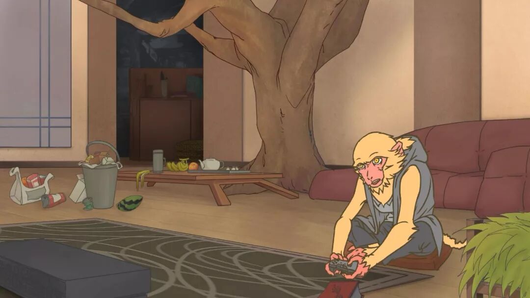 故事讲述了一只猴子玩一款很困难的游戏,从开始的轻松不在意到后面直至崩溃。全片一个镜头,主要以角色的表演来表现故事和游戏内容。