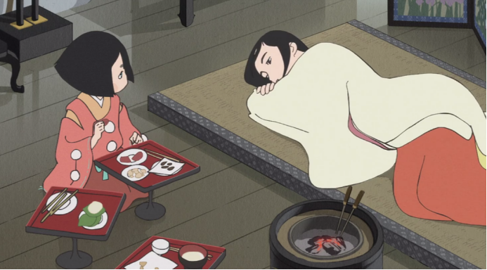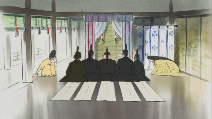 《辉夜姬物语》(2013)中,前来向辉夜姬求婚的五名贵族只能在帘幕外与辉夜姬对话。虽然五贵人求婚是片中最为核心的桥段,五人从头到尾都没有与辉夜姬见过一面