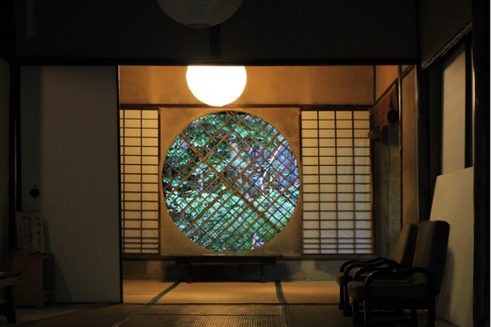 京都奥嵯峨的祇王寺是明治时代重修的寺院,薄格子窗和圆形的“吉野窗”都是比平安时代更为晚近的产物