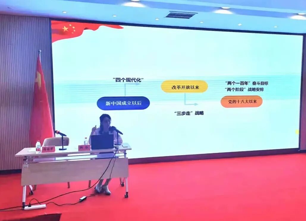 课堂上,韩靓以“百年奋斗路,启航新征程——学习贯彻习近平总书记‘七一’重要讲话精神”为主题,结合古今中外历史发展及重大事件,回顾了中国共产党百年光辉历程。
