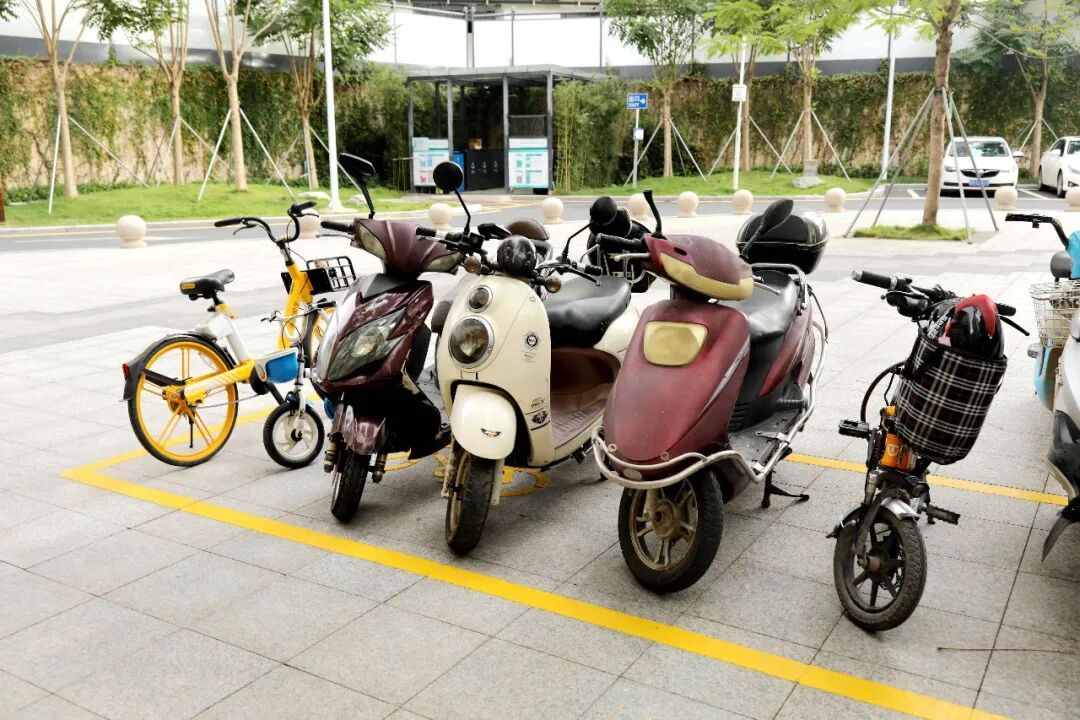 干净整洁的街道,电动车有序停放。