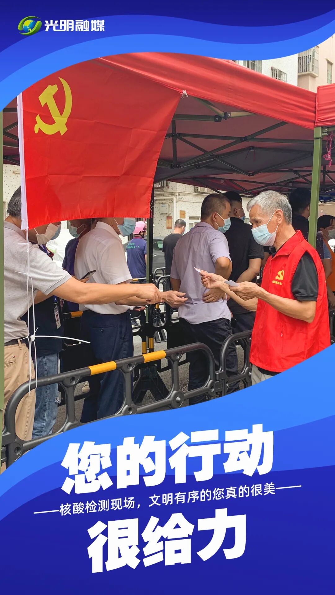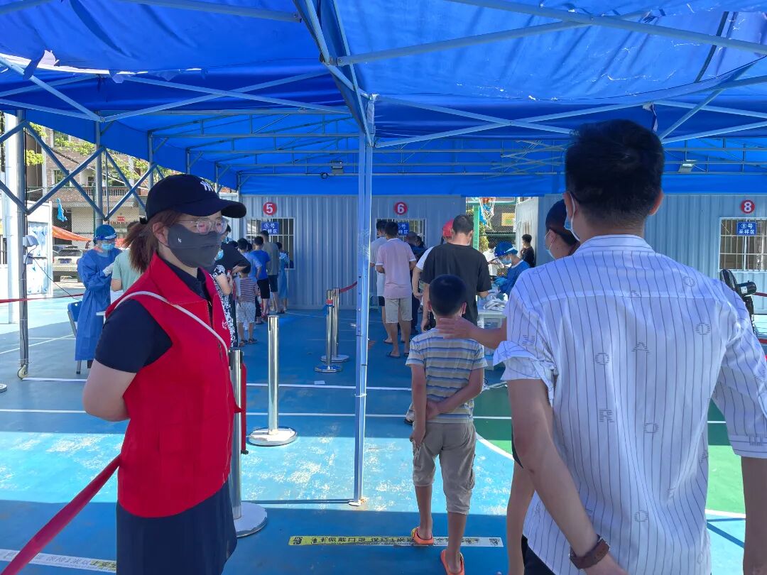 在塘尾社区的各个核酸检测点,党员干部们穿上红色志愿者服,全力协助做好卡口执勤、扫码登记、宣传引导、维持秩序等工作,有效缩短了居民等待时间,提高现场检测效率。