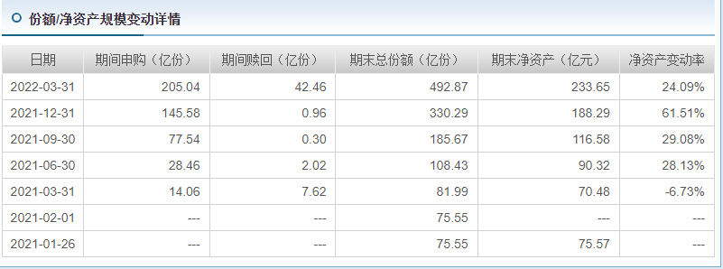 然而,即便港股QDII基金在短时间内出现如此之大的净值损失,但基金规模在下跌中持续飙升的反常现象,却似乎说明港股市场越往下跌,资金看好反弹的信心就越足。以上述港股QDII为例,虽然该QDII基金净值已经腰斩,但规模却从2021年1月底成立时的75亿资金,飙升到2022年3月末的233亿资金,也就是说,基金净值腰斩的同时,规模却暴增了3倍!