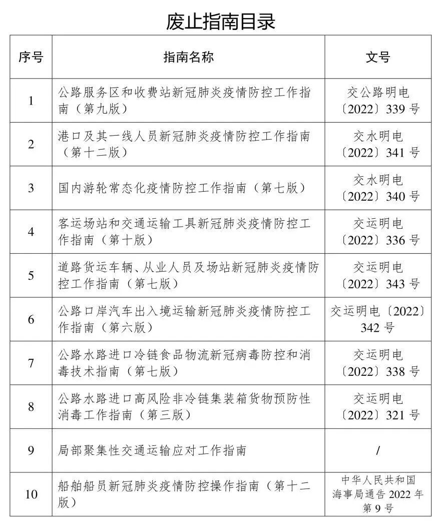 9.同步废止交通运输领域有关疫情防控指南,具体目录如下: