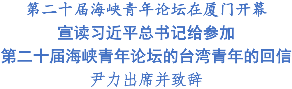 尹力表示,福建处在两岸融合发展最前沿,与台湾骨肉相亲、血脉相连。我们始终秉承两岸一家亲理念,持续推动两岸青年交流交往、交心交融,为两岸青年施展才华、共创未来提供了宽广舞台,越来越多的台湾青年主动来大陆追梦筑梦圆梦。尹力说,青年是国家的希望、民族的未来,两岸青年是促进两岸和平发展、融合发展的中坚力量。福建将一如既往聚焦台湾青年所思所想所盼,研究推出更多惠台利民措施,为台湾青年来闽学习、就业、创业、生活提供更多机遇,为两岸青年互学互鉴创造良好条件。我们热忱欢迎台湾青年朋友多到福建来,分享自己在福建的经历和感悟,让更多台湾青年了解大陆,与大陆青年共创美好幸福生活,让两岸青年在奋斗中绽放青春光彩。