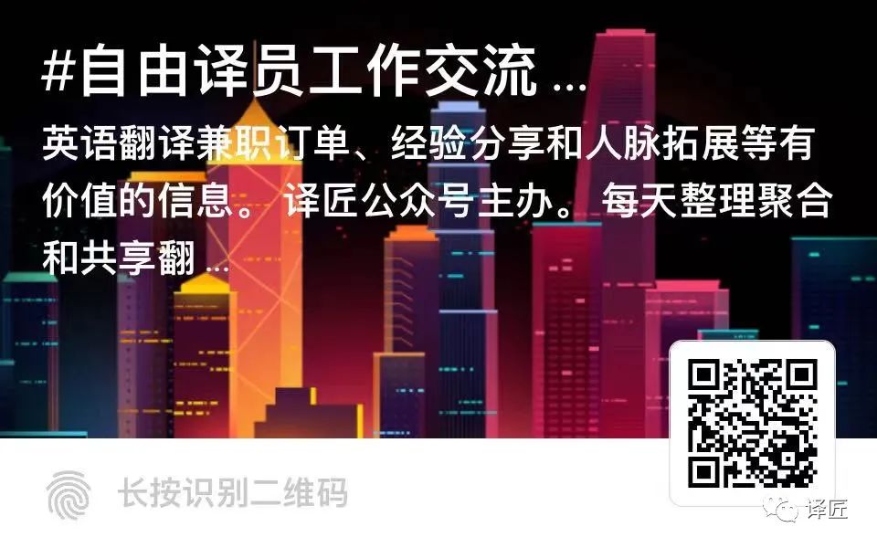 阅读原文申请岗位,第一时间获取更多优质兼职翻译工作,敬请扫码加入如下这个增值社区:自由译员工作交流,涵盖:兼职订单、经验分享、资料共享和人脉拓展等功能。也推荐小伙伴搭建和运营自己的小组。