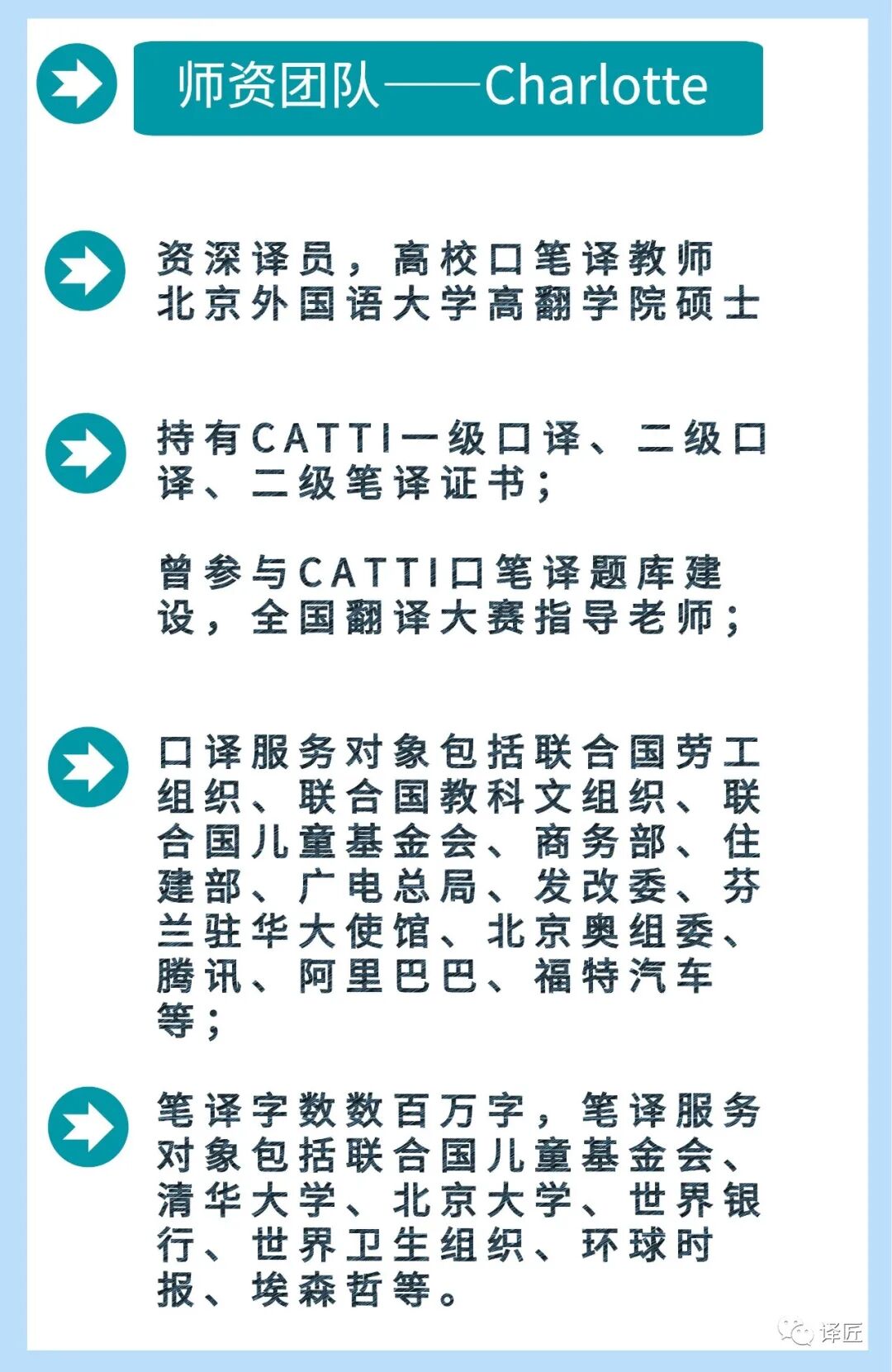 本课程大纲和课程安排为译匠和各位老师的知识产权,最终解释权归译匠和各位老师所有。未尽事宜,请联系微信 xiaoyijiang1.