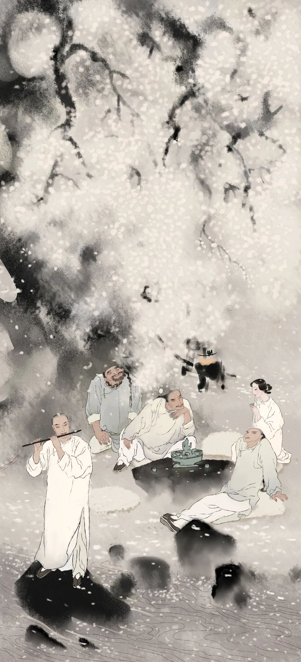 一日,沈复相约友人踏青。苏城南园,菜花黄时,苦无酒家小饮,对花冷饮,殊无意味。芸急中生智,雇了街边馄饨小摊,担着锅炉灶,携沙罐,备齐茶酒菜肴。一行人无不叹服,饮酒话诗,品茗闲谈。众皆陶然,尽兴而归。