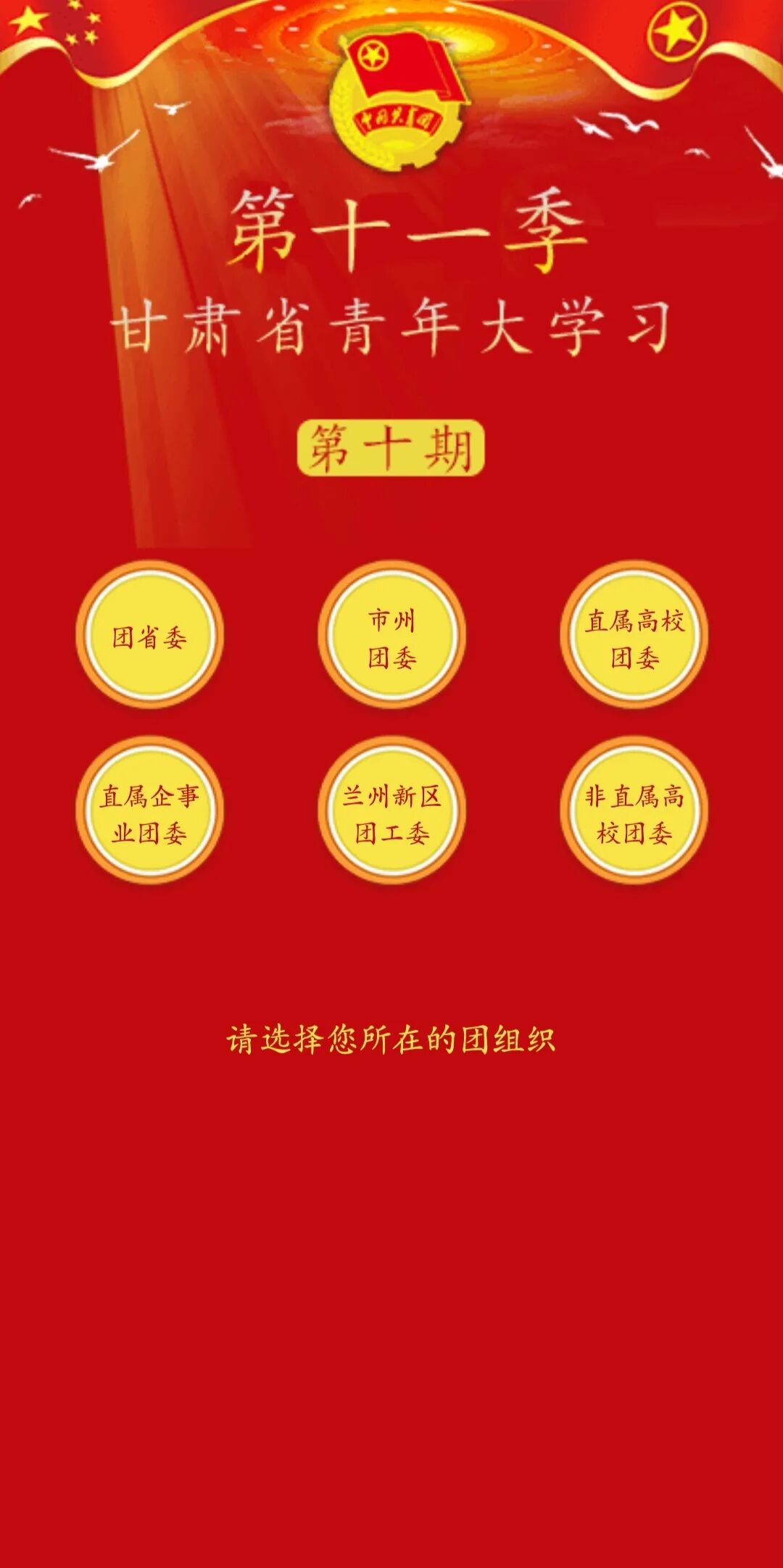 榆中县下面选择自己所属的团组织