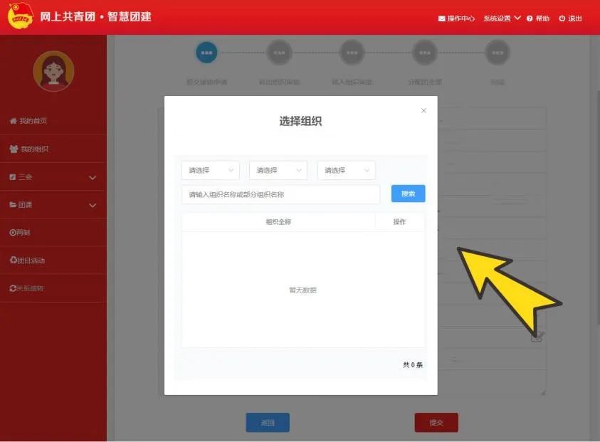 (4)选择转入申请的组织,点击右侧选项。
