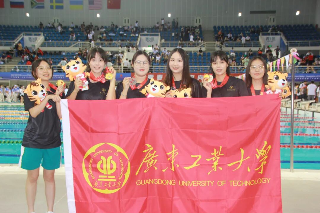 广东省第十一届大学生运动会游泳比赛于2022年5月24--29日在广东省奥林匹克体育中心游泳馆圆满结束。经过四天激烈的角逐,我校16名队员不负使命,夺得6金2银4铜,团体总分榜第二,被授予“体育道德风尚奖”,实现了运动成绩和精神文明“双丰收”,出色完成学校交给的省大运会任务。值得一提的是,在男子甲组4*50米混合泳接力决赛中,梁梓灏、李直、卢泽华和李俊杰组合破省大运会纪录夺冠,赛出了友谊,赛出了水平,展现出广工莘莘学子的风采。