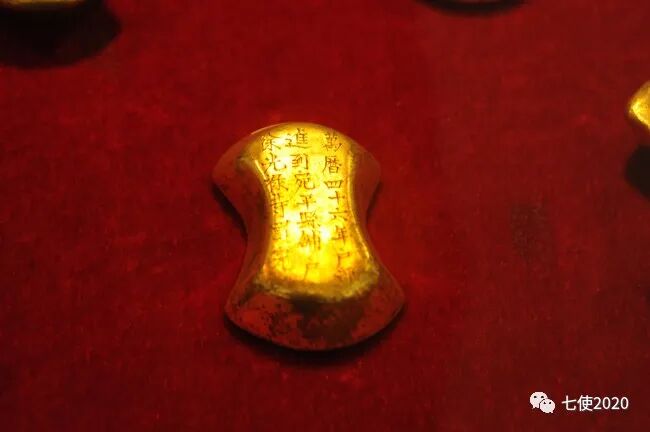 这是明定陵博物馆展出的金元宝,明显污迹斑斑。