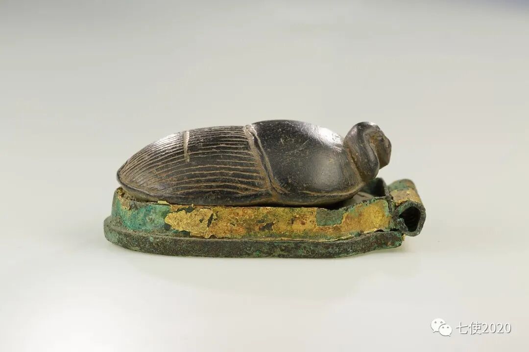 古埃及圣甲虫上贴的金箔片,已然残破不堪。