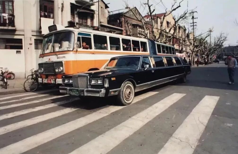 92年的延安中路黄陂路口,上海街头的加长版奢华轿车