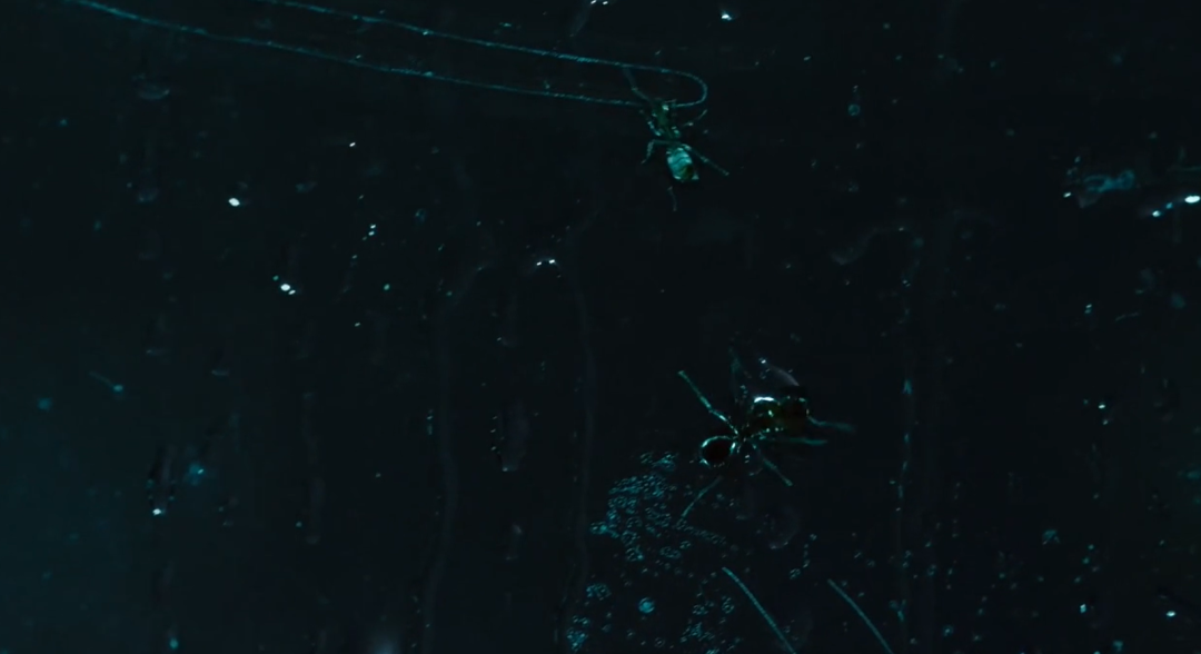 再比如在雨中出现的蚂蚁,更是一个难以忽视的符号元素。看似轻轻一瞥,其实是导演「见微知著」的安插。蚂蚁是团结的群居生物,能够用自己的力量搬起超过体重很多倍的东西,如同故事中抱团取暖的这一群城市畸零人。他们共存的集装箱工厂,也如同一个大隐隐于市的乌托邦。蚂蚁既象征了这群人的微小,又彰显出他们不屈的力量。