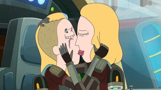 而本季编剧再接再厉,先是让地球贝丝和太空贝丝搞在了一起,接着又让她老公杰瑞知道这件事。