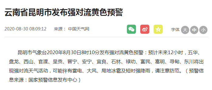 来源:中国天气网云南站、云南气象、昆明气象
