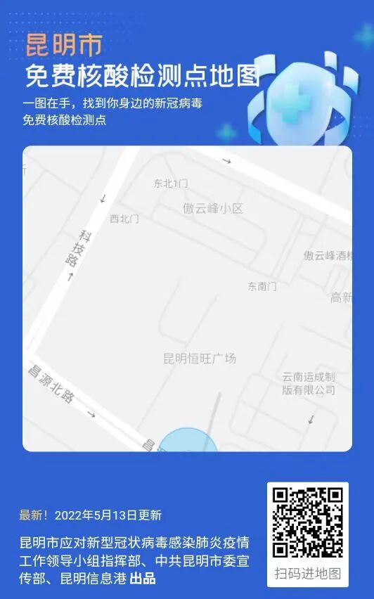 通知中明确,为全面有效提升社会面日常筛查能力,方便群众参与核酸采样,昆明市各县(市)区、各开发(度假)区178个免费核酸检测点位不减,免费检测时间再次延长至5月31日。