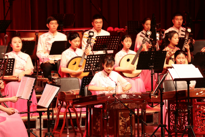 本场民族音乐会由南京大学民族乐团张静波教授担纲指挥,特邀江苏省音乐家协会主席朱昌耀、江苏省演艺集团指挥王爱康以及历任民族乐团首席等嘉宾联袂演绎,涵盖独奏、联奏、管弦乐等多种形式的经典曲目,以余音绕梁之韵营造昂扬奋进之境,以音传史、音史互映,集中展示了党团结带领中国人民从站起来、富起来到强起来的历史伟业,讴歌了中国共产党为中国人民谋幸福、为中华民族谋复兴的初心使命。