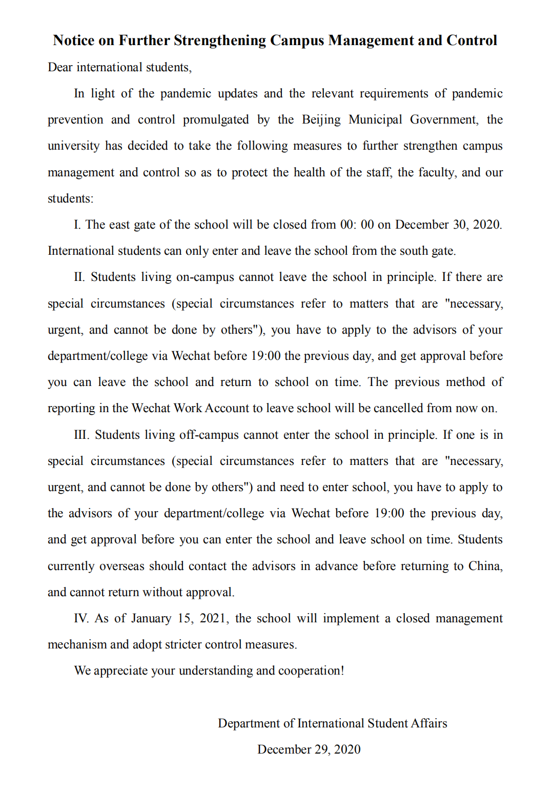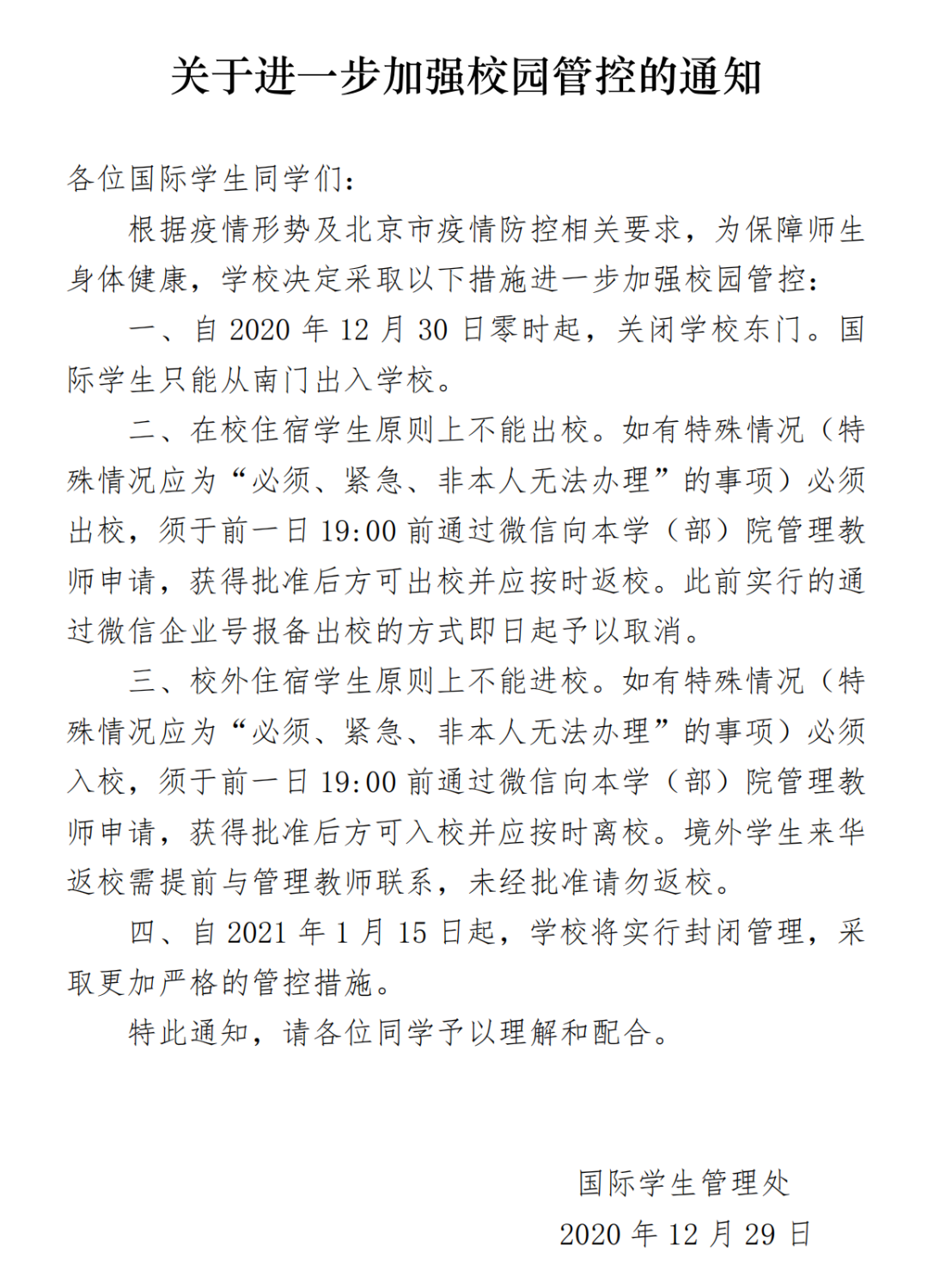 【ISO·NOTICE】关于进一步加强校园管控的通知