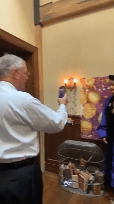 身穿学士服,走在一众博士中的霉霉气场全开↓