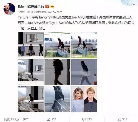 在沉寂的那一年里霉霉事业上不算得意,但是却收获了爱情,她遇到了自己的真命天子Joe↓
