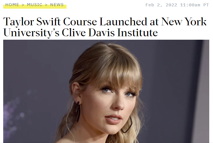 以至于今年1月26日,纽约大学还曾开设过一门专门研究Taylor Swift作品的课程。