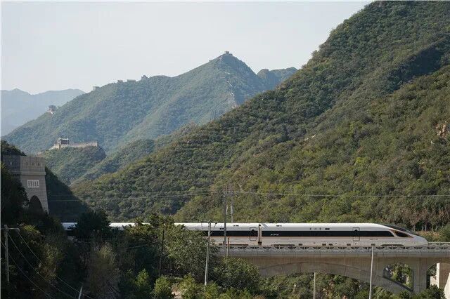 如今,长城脚下,中国自主设计建造、开智能铁路先河的京张高铁穿越于崇山峻岭间。具有完全自主知识产权的复兴号动车组飞驰而过,勾勒出百年中国的追梦轨迹。