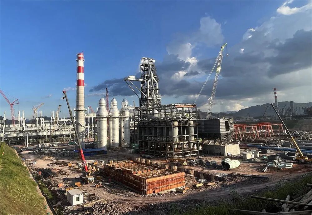 龙江潮涌,万物竞发!初秋八月,漳平各地依然酷热难耐,在漳平市西园镇位于九龙江北溪双洋溪与新桥溪交汇处旁,一片5000多亩的工地在山间铺开,远远望去,几十台塔台吊车林立,钢构厂房、高炉主体、冷却塔也初见雏形,走进工地,上百台机械车辆来回穿梭,千名工人紧张忙碌,正是一派紧张的建设景象。