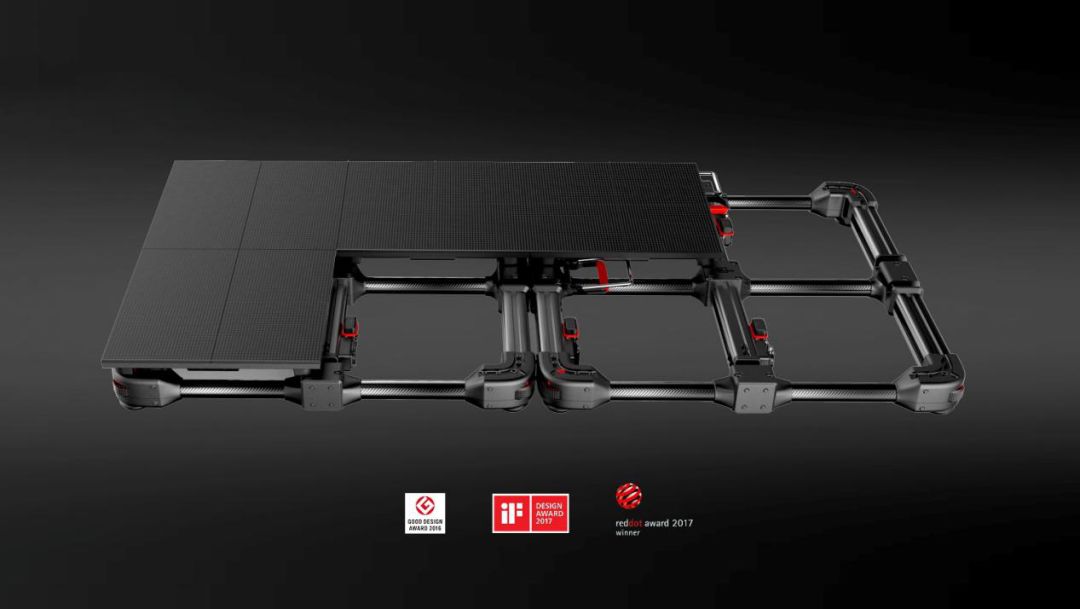 他们将地砖屏分为100cmx100cm“田”字格支架和屏幕的组合形式,支架四个脚垫可调节水平,将地砖屏幕的散装方式变成模块化精准安装。支架采用铝镁合金与碳纤维管结合, LED屏幕模快同样采用了碳纤维管和铝合金灌胶来强化产品坚固性和防水性,减轻重量还保证了产品结构强度,同时节省了人力,节省了原来安装时间的50%,达到提高效率的效果。