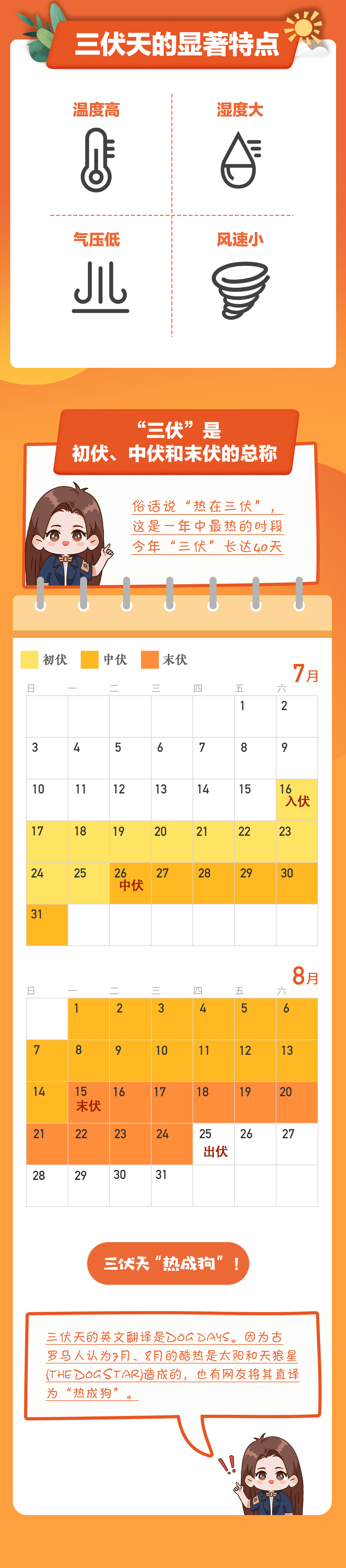 其实,“加长版”三伏天十分常见,2016年、2018年、2020年都出现过,均为40天,比“普通版”多了10天时间。主要是中伏会比一般年份多一倍,达到20天之久。时间长,并不意味着热度高。