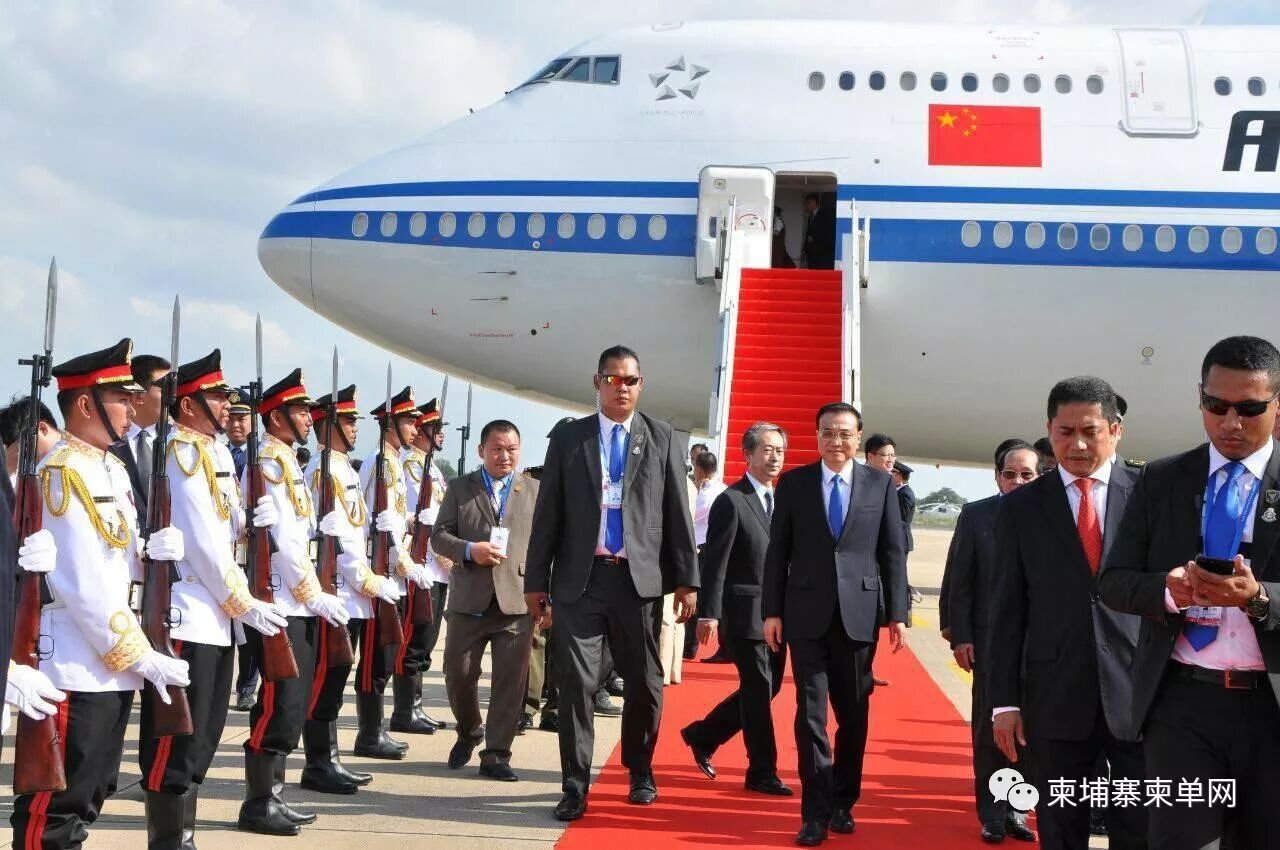 2018年1月10日下午2点25分,中国国务院总理李克强携最高代表团抵达柬埔寨金边国际机场。