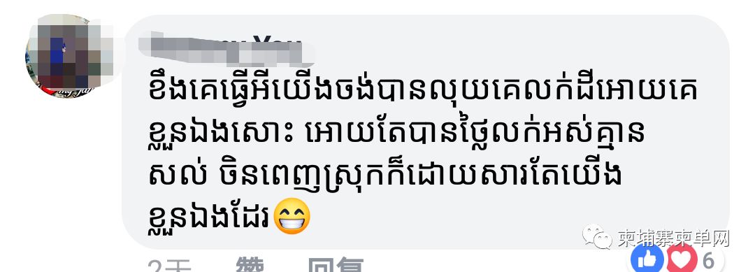 还有人说:“中国人是来投资的还是来扰乱柬埔寨的?如果是来投资的为什么要来威胁我们?我不怕,柬埔寨人不要帮着中国人”