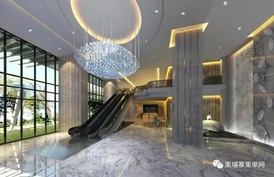 钻石双星精品酒店式公寓配有5-7米挑高气派大厅,24小時保全及中英柬文前台接待。