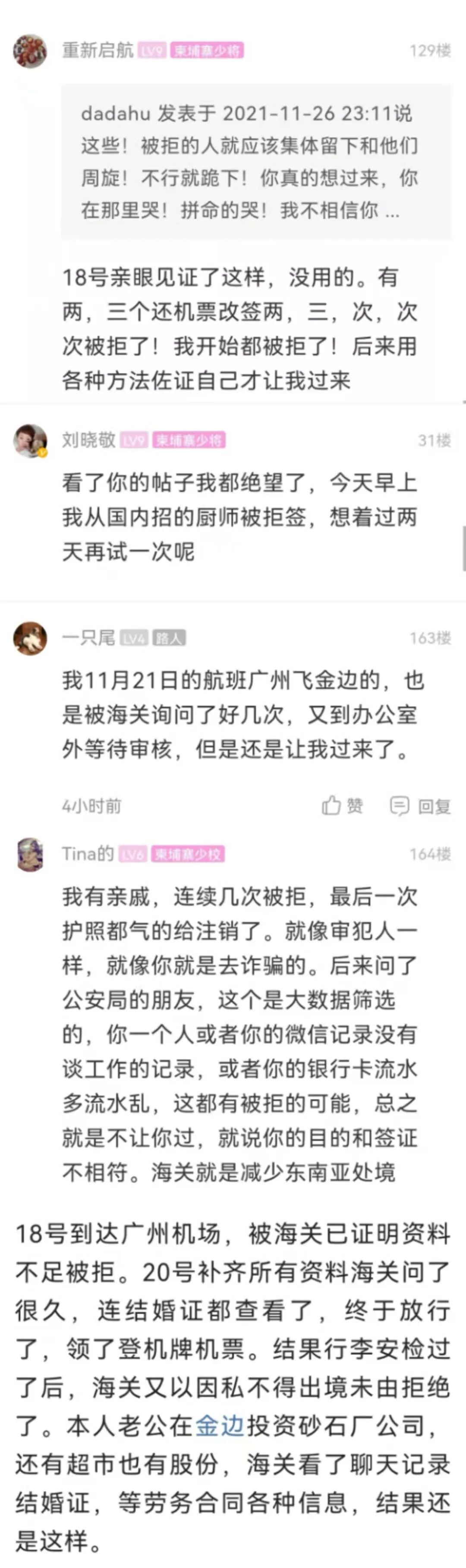 近日,多名同胞在柬单网APP上,就11月25日广州飞金边的某航班多人被拒出境而展开了爆料,陈强(化名)就是其中之一。