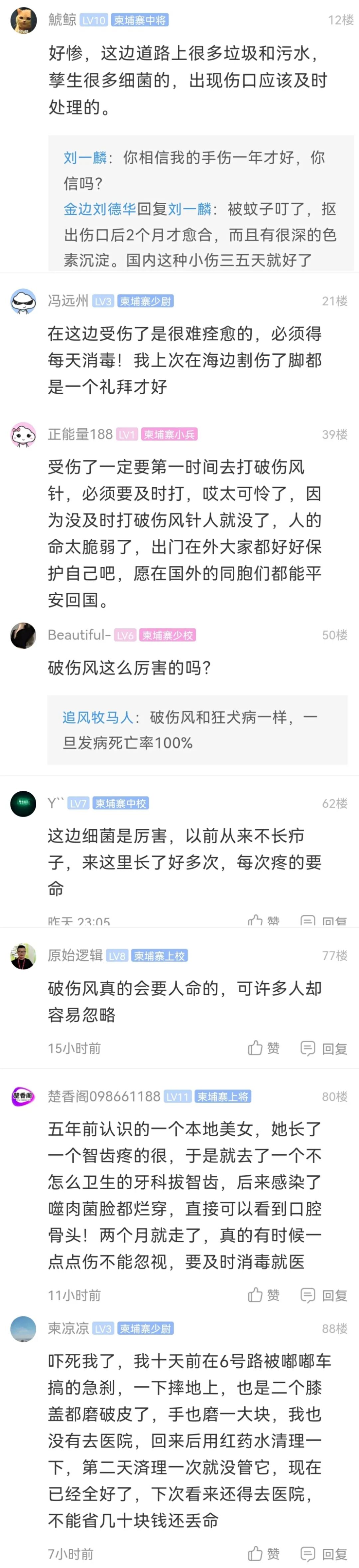 柬埔寨天气炎热,卫生条件也相对较差,因此一旦受伤很容易感染,如果不加以处理,很容易加重伤势。这件事也提醒了大家,在柬埔寨要重视自己的身体健康,莫让“小病”成“重疾”。