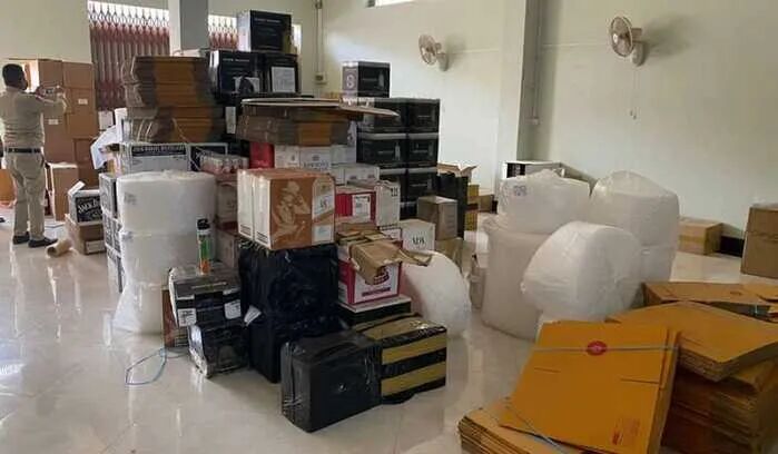 第2处和第3处涉嫌走私,共查获999箱产品,其中55箱为香烟和啤酒,同时,逮捕4名涉嫌非法居留的泰国人。